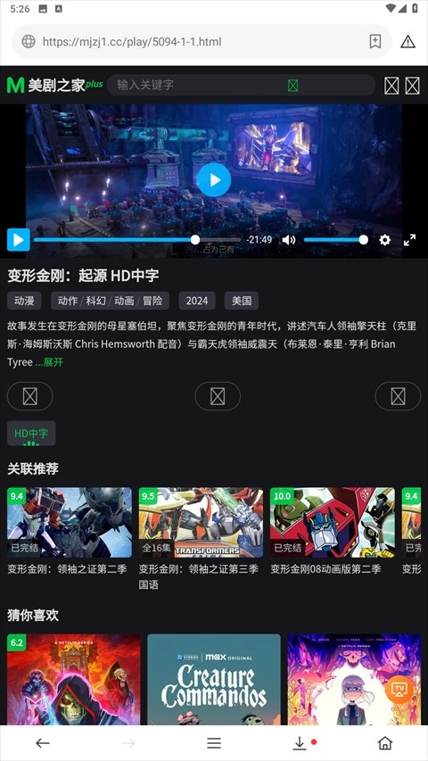 6、点击播放按钮就能开始观看,还能享受HD中文字幕的高清体验。
