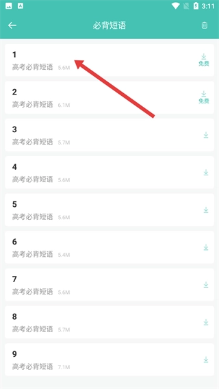 3、在需要背诵的短语列表里,点击【高考必背短语-5.6M】这个选项,就能进入到短语的详情页面,在这里可以查看具体的短语内容,帮助考生积累高考英语所需的短语知识。
