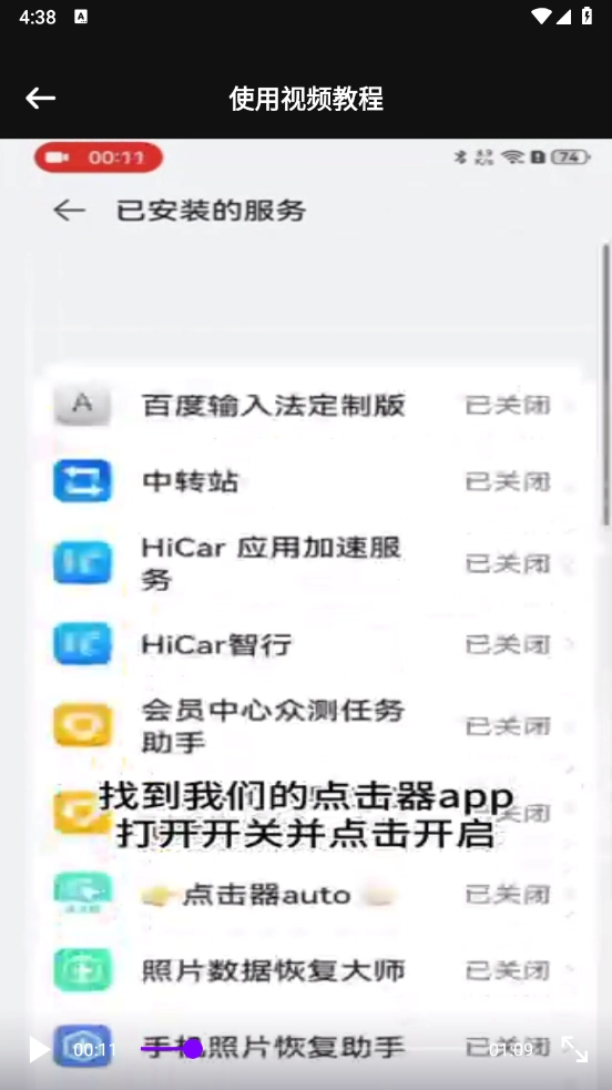 3、找到我们的点击器,打开开关并点击开启