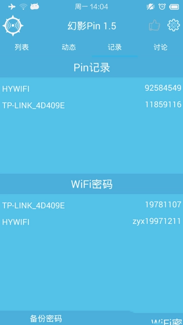 11、现在WIFI已成功连接,手机会通过震动和铃音进行提醒,跑Pin操作已经完成,你可以在记录里查看WIFI密码。