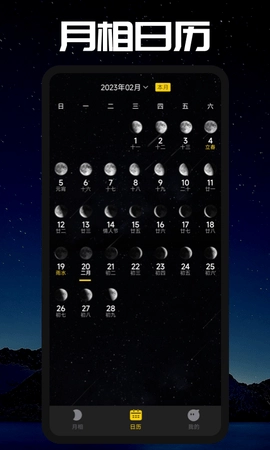 Moon这款软件不仅能展示当天的月相详情,还会同步呈现气候状况。用户只需打开软件,就能随时知晓月亮的阴晴圆缺,洞悉月相变化的规律。不管是想查询满月的精准时刻,还是想深入了解月相变化的内在逻辑,Moon都能一一满足需求。除了实用的功能外,软件内还包含了丰富的月相科普知识,用户通过浏览其中的干货教程,就能快速解开月相背后的奥秘。