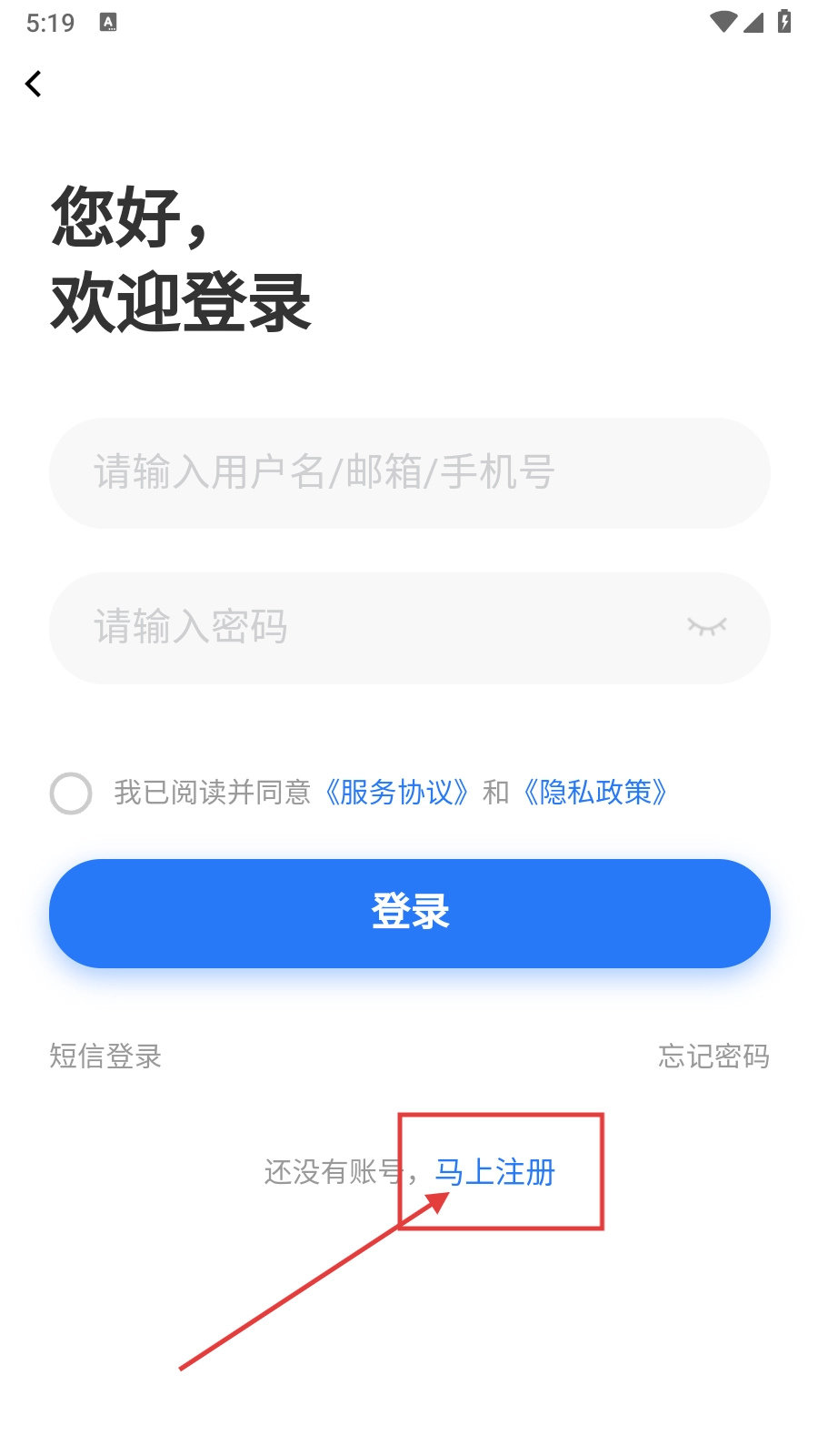 3、在登录界面,要是还没有账号,点击【马上注册】按钮就能进入注册流程。