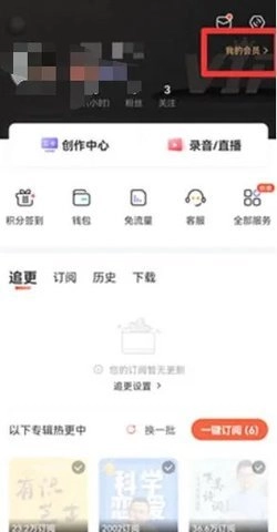 1、启动喜马拉雅应用,进入“我的”页面后,找到并点击“我的会员”选项。