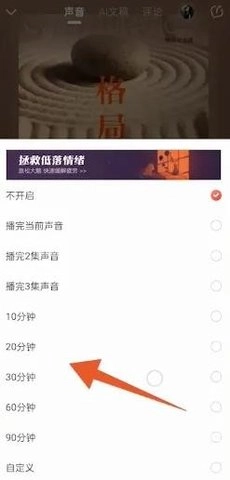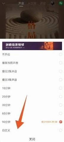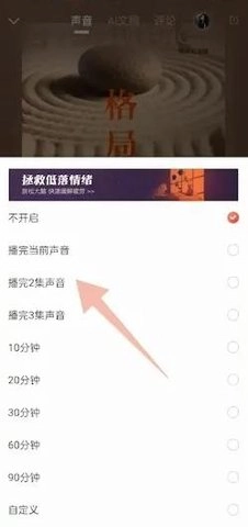 5、也可以选中上方“播放完几集再关闭声音”的选项,这样下次聆听时,就无需手动拖动进度条,能直接播放下一集内容。