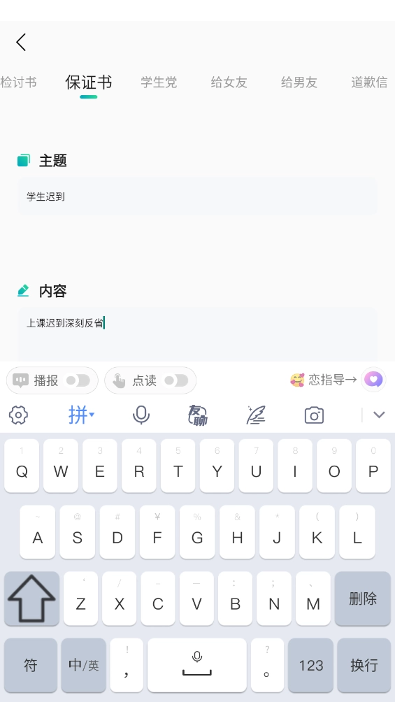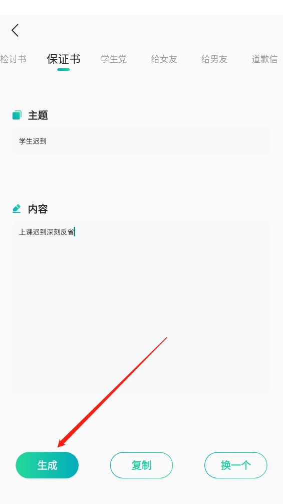 进入首页后,能看到非常丰富的创作板块,像检讨书、保证书和道歉信之类的都包含在内。