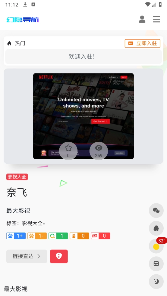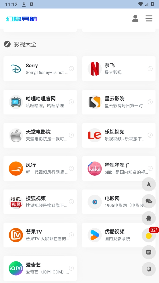 5、点击想看的影视网站就可以使用了。
