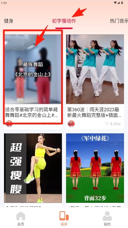 2、在分类页面(例如“初学慢动作”这类),可以浏览教学视频的封面和标题,挑选自己感兴趣的内容点进去观看。