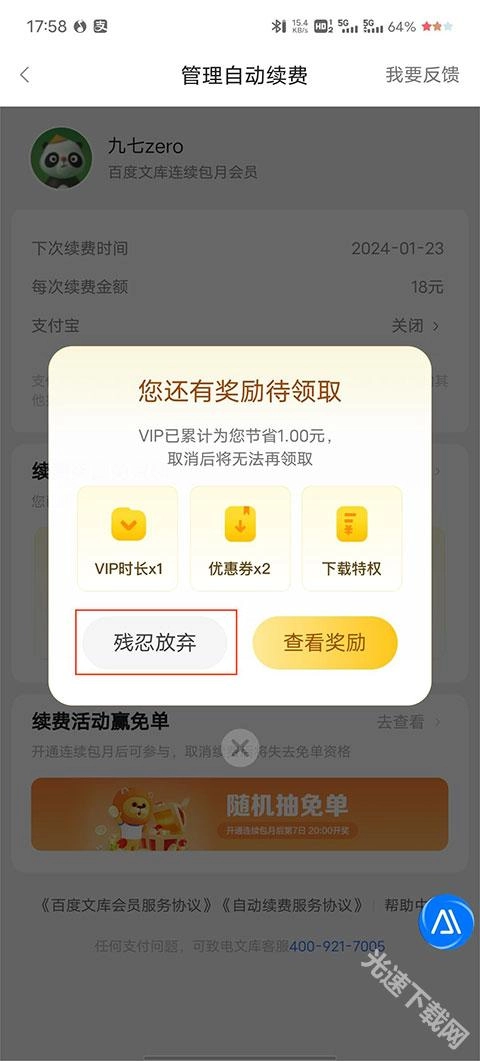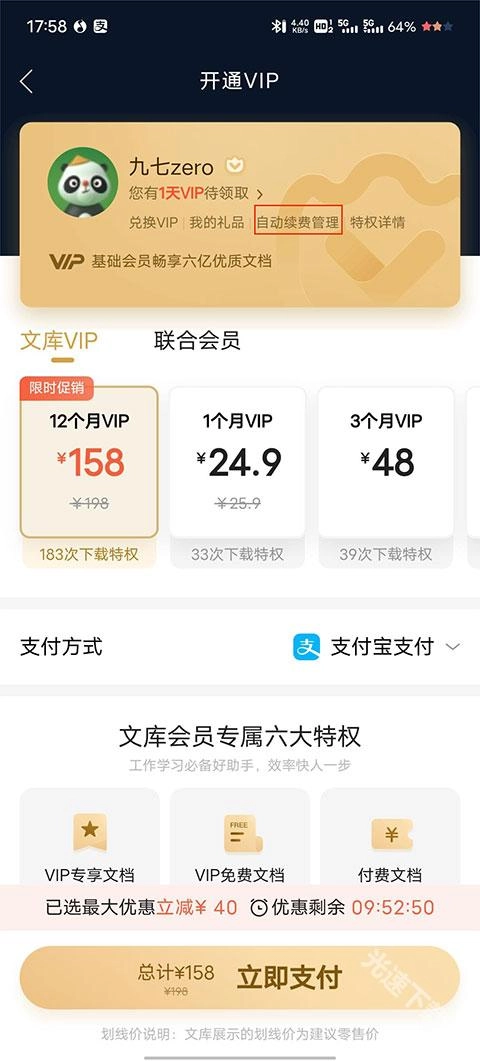 2、进入开通VIP界面,点击自动续费管理;