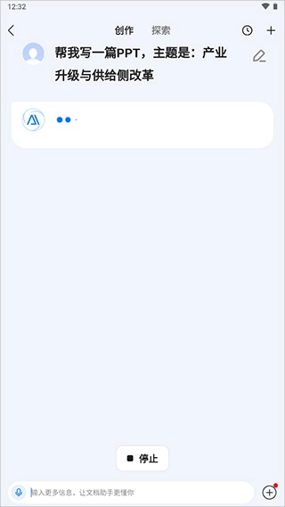 接着在弹出的页面里依据提示完成后续操作,用户既能够输入主题,也可以选择文档来开展创作。