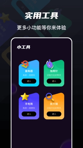 Sans助手是一款功能丰富、实用便捷的工具软件,集成了量角器、指南针、手电筒、放大镜等多种实用功能,用户无需额外操作即可直接使用。此外,它还配备了精致小组件与实用功能,比如倒数日工具以及提升手机使用舒适度的相关设置,全方位满足用户的各类需求。快体验功能能够帮助用户更迅速地熟悉和使用各项功能,进一步增强操作的便捷性。无论是清理手机内存、一键完成截屏与录屏,还是开启夜间模式、启用防蓝光功能,Sans助手都能为用户提供便利,有效保护手机使用体验。