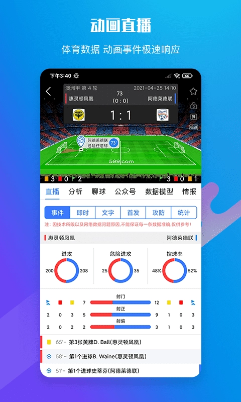 1、599比分的数据更新十分及时,能保证用户得到的信息始终是最新且最准确的。