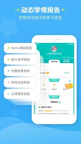 5.学习报告:每节课结束后会即时生成学习报告,通过数据驱动的方式展现孩子的学习情况。