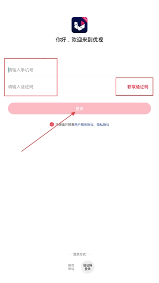 4、还能切换至“验证码登录”模式,输入手机号码后点击【获取验证码】,将收到的验证码填入相应位置,即可完成登录并进入应用功能页面。