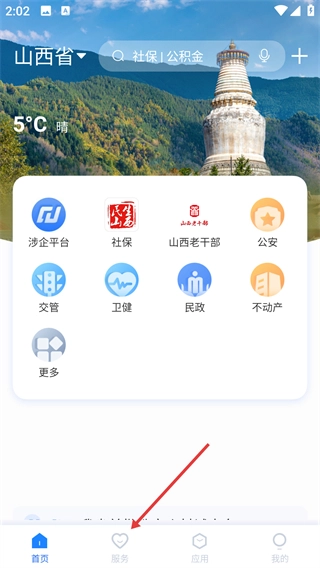 1、在首页点击底部的【服务】选项,进入服务页面后,就能查看各类不同的服务分类了。