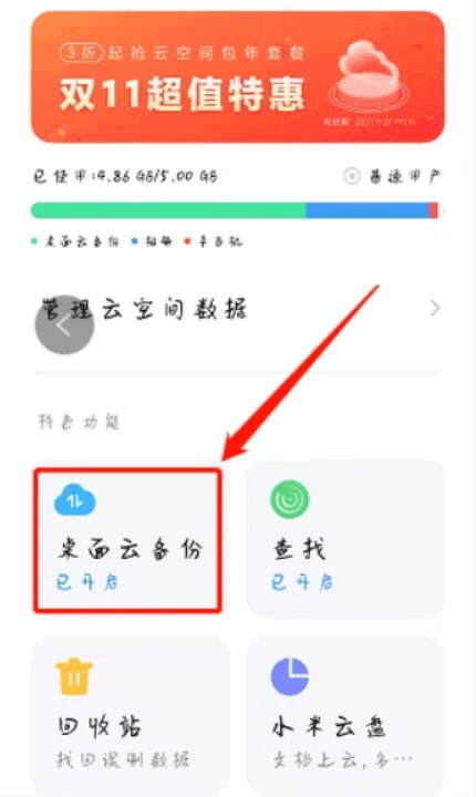 3、点击桌面云备份。