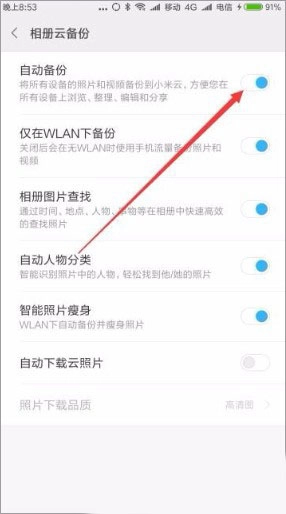 5、此时也能打开相册云备份页面,同样点击“自动备份”选项后,小米相册的云备份功能就会被关闭了