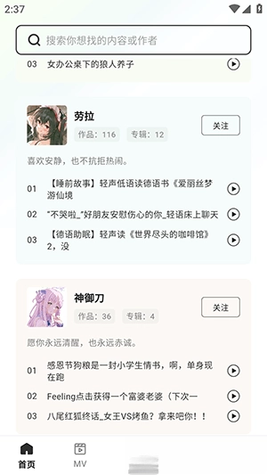 1. 内容覆盖面十分广泛,包含广播剧、有声小说、音乐、二次元声优作品、情感电台、白噪音等多种类型。