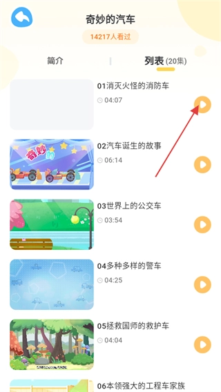 3、在列表页面中,找到并点击“奇妙的汽车”这一选项,即可进入到该动画的剧集列表页面。