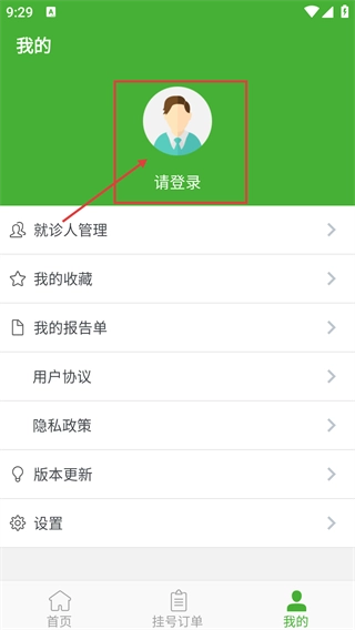 进入界面后,能看到【朝阳市中心医院】的相关服务,接着点击底部的【我的】就能进入对应的页面。