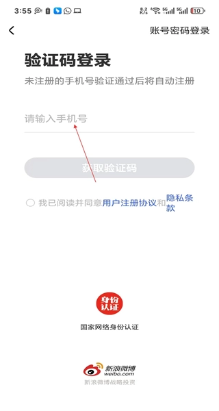 3、进入验证码登录页面后,能看到手机号输入框和协议选项,接下来要填写相关信息,完成账号登录的操作。