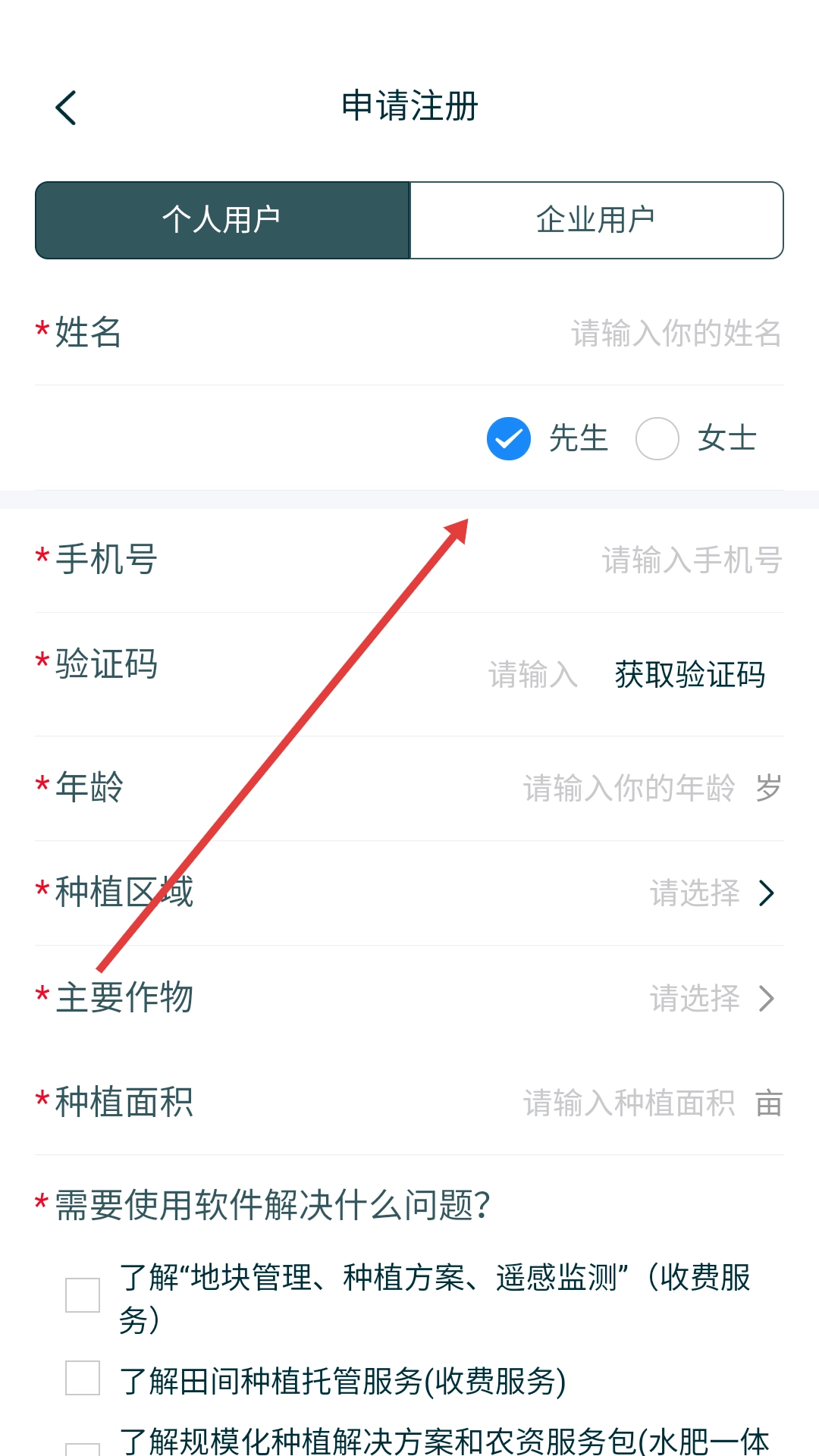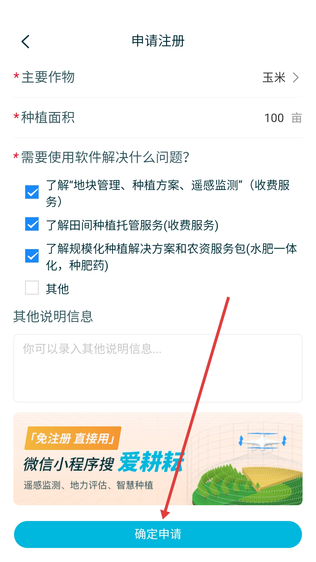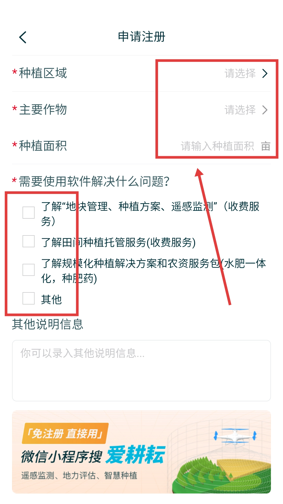 3、选定种植区域与主要作物,填写种植面积,并勾选待解决的问题。