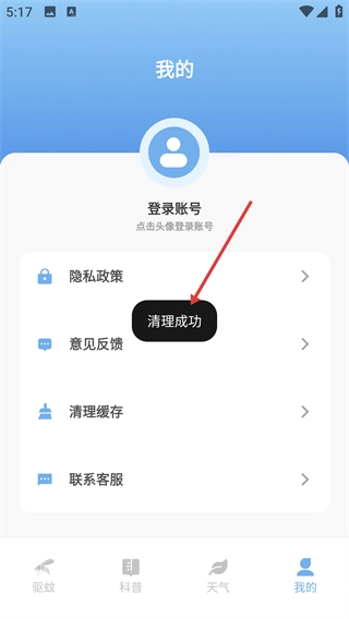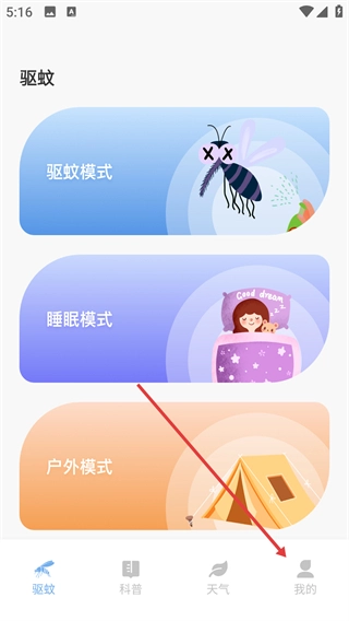 1、打开驱蚊类应用后,在首页点击底部导航栏中的【我的】选项,即可进入个人中心页面。