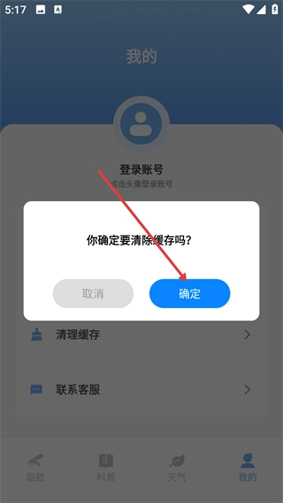 3、在确认弹窗里,点击【确定】按钮,完成缓存清理操作。