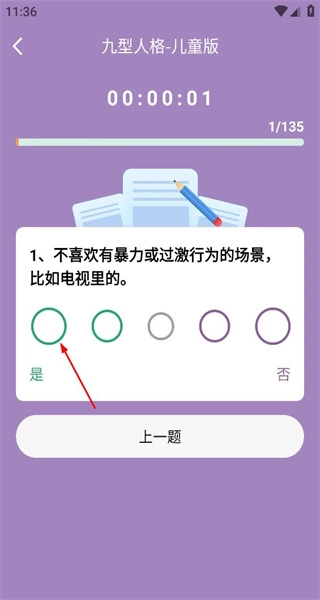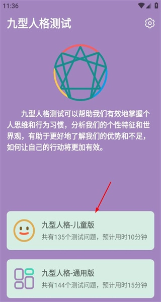 1、启动软件并进入主界面,浏览测试相关的介绍内容后,选择“九型人格儿童版”这一选项,随后进入该版本对应的测试准备界面。