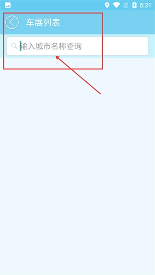 进入【车展列表】页面后,可通过顶部的【输入城市名称查询】搜索框,输入目标城市名称,来查询该城市对应的车展相关信息。