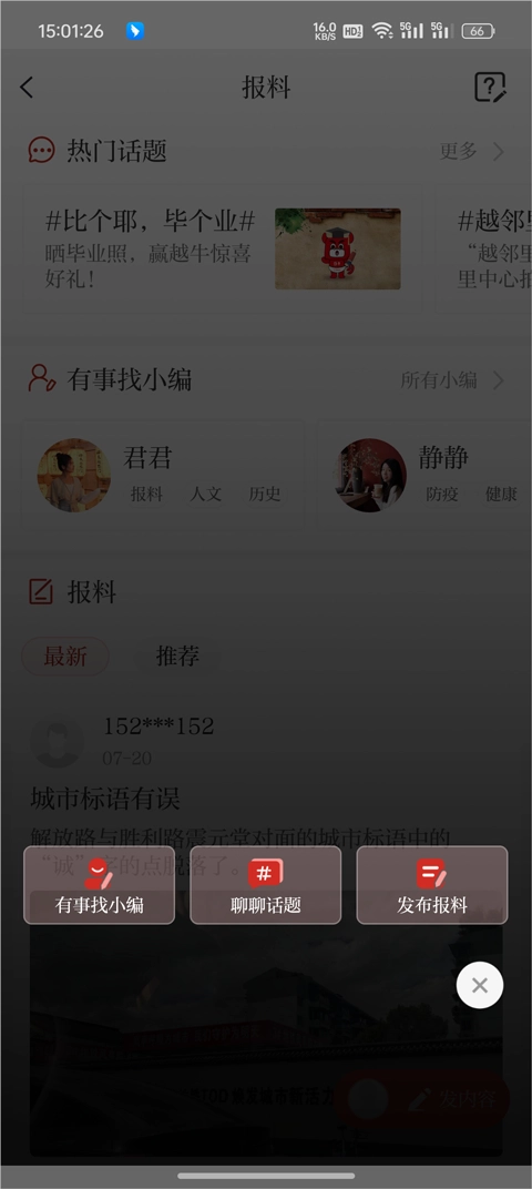 6、在线发布资讯,把自己了解到的本地最热门的资讯分享出去,发布的动态能随时和好友互动交流。