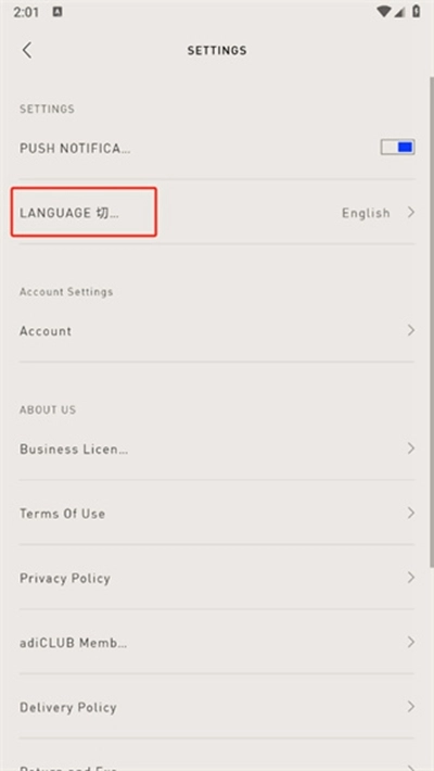 4、最后点击进入LANGUAGE页面,勾选中文并保存,重启应用后即可完成设置。