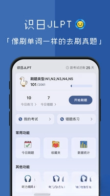 识日JLPT是一款聚焦日语能力考试备考的垂直刷题应用,它深度践行“像刷单词那样刷真题”的理念,把大量历年真题拆解成能反复练习的知识点模块,借助科学的算法推送、个性化的进度管控以及高效的数据分析,助力考生突破备考难关,完成从题海战术到精准提分的蜕变。