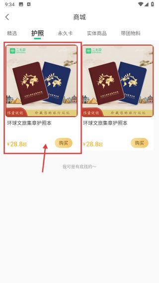 在商城页面中,点击“护照”分类选项,即可进入护照商品的列表页面。