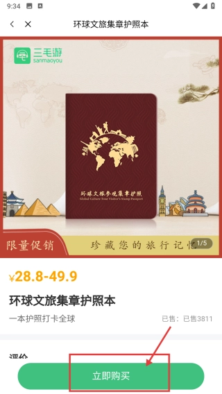3、在护照类商品列表里,找到环球文旅集章护照本的商品条目并点击,即可进入该商品的详情页面。