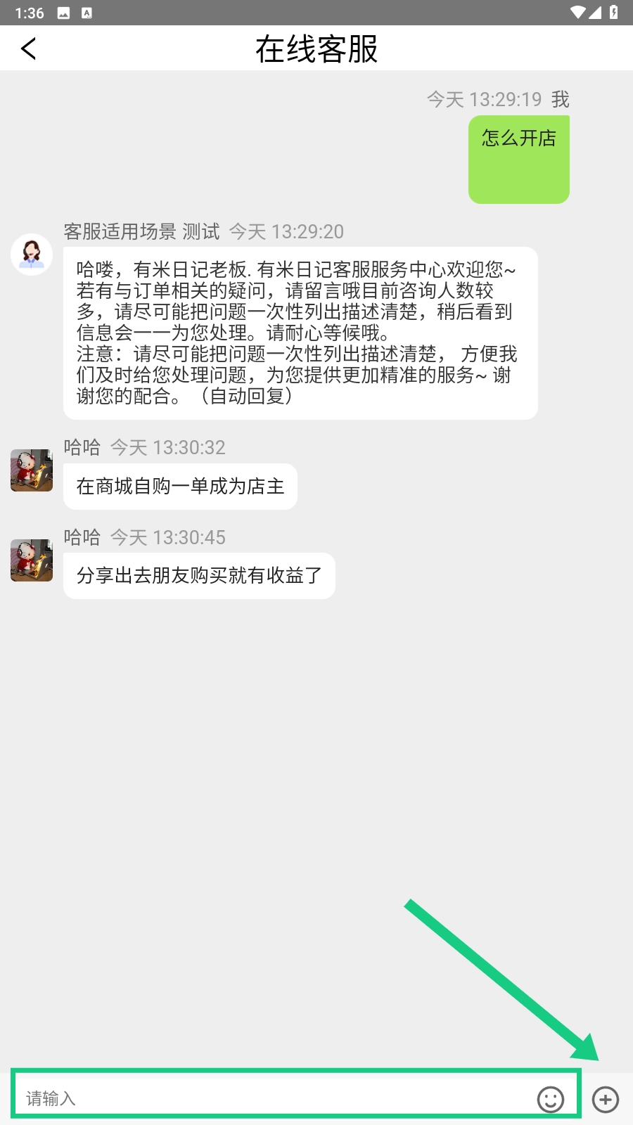 3、在在线客服页面的输入框里,输入你想咨询的问题,就能向客服发起询问啦。