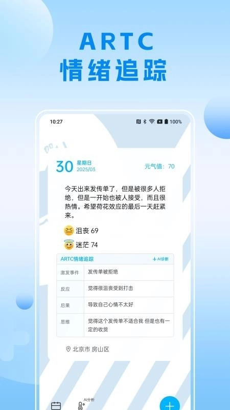 可听情绪日记是当下许多年轻人都在使用的生活类软件,你不仅能借助它随时随地记录日常小事,还能添加情绪等元素,这样能更有效地留存回忆、宣泄情感。此外,软件会定期生成对应的情绪报告,并提供相应的解决方案,以此帮助用户排忧解难。有需要的朋友们,别犹豫,赶快使用吧。