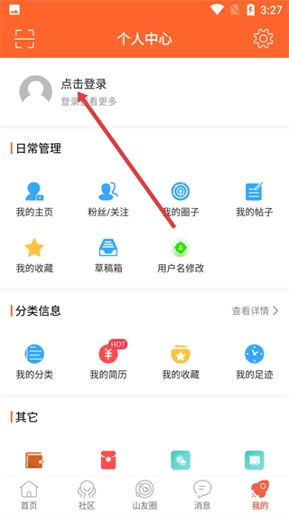 2、进入个人中心页面后,点击【点击登录】区域,即可跳转至账号登录界面,为后续的账号操作做好准备。