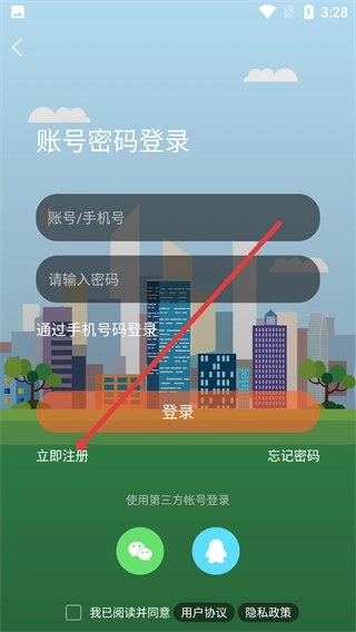 3、当处于账号登录界面时,如果还没有注册账号,可点击【立即注册】按钮,跳转至注册页面。