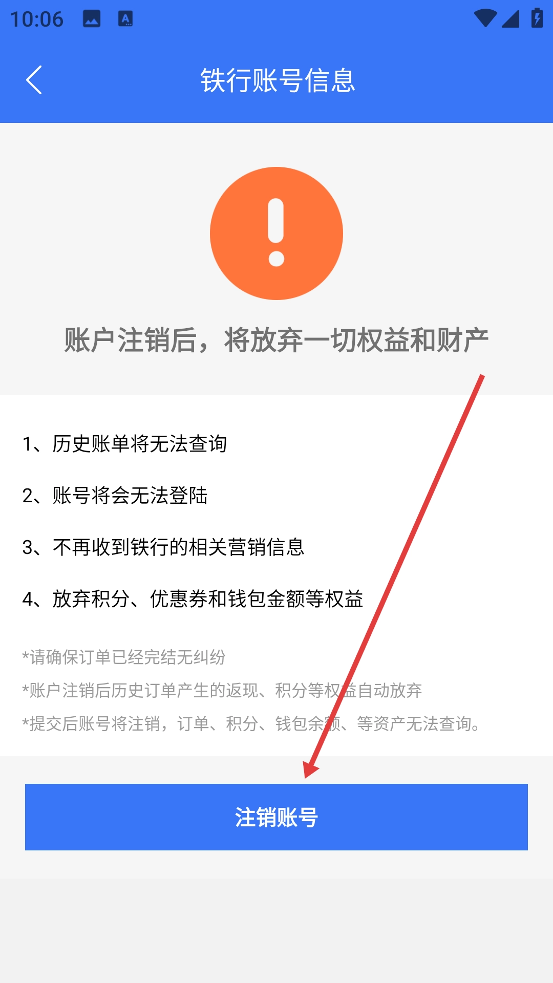 4、仔细阅读账号注销提示内容后,点击【注销账号】按钮,按照页面指引完成账号注销的相关流程。