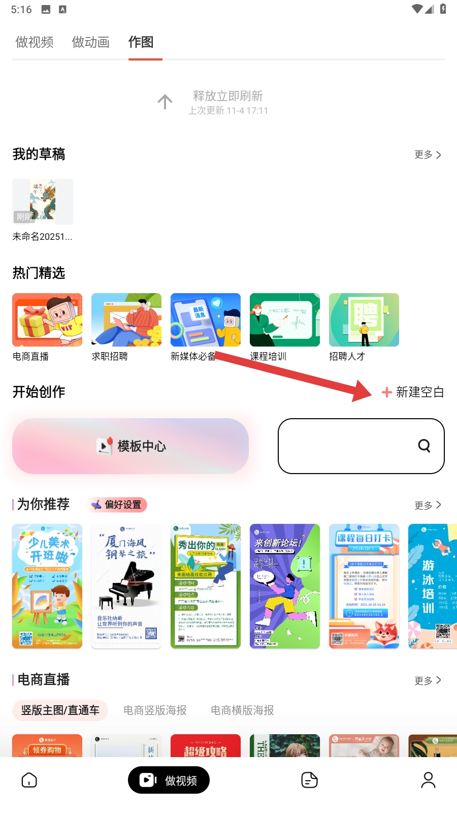 1、我们打开来画,在作图页面点击【新建空白】,开启创作之旅吧。