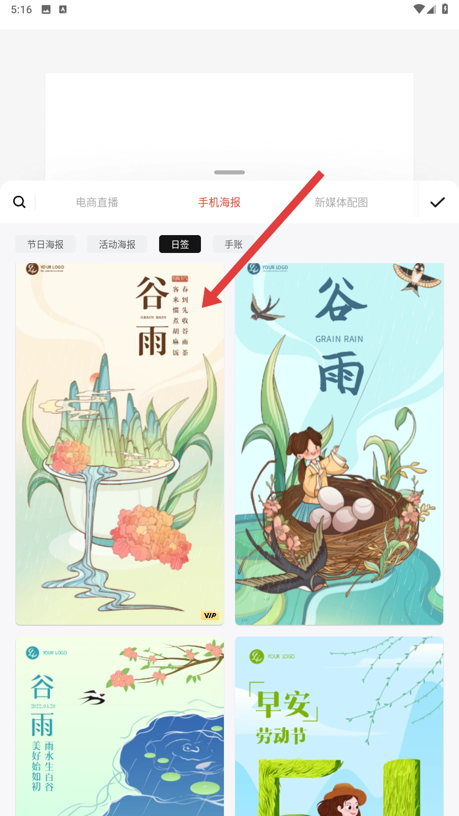 2、进入模板选择页面后,挑选您喜欢的【手机海报】模板(例如谷雨主题模板),然后进入编辑界面即可。
