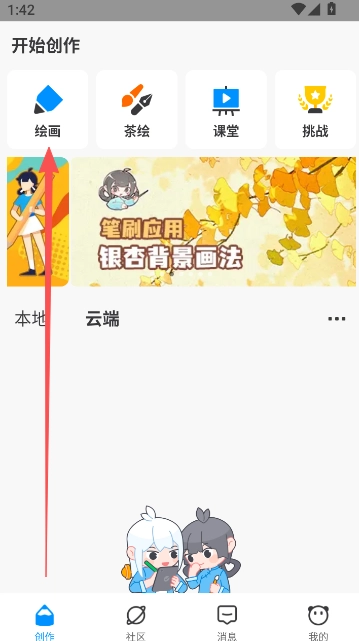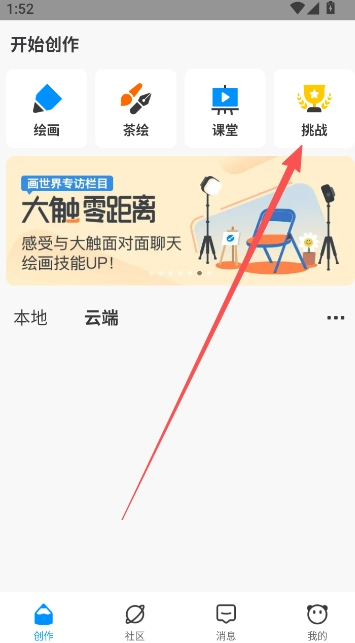 1、使用熊猫绘画软件进行上色操作时,需要用到软件内的挑战功能版块。