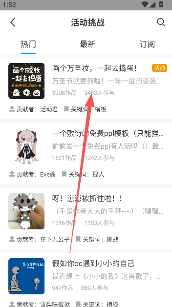 7、点击挑战活动频道中的活动,挑选一个契合上色主题的,例如即将到来的万圣节。