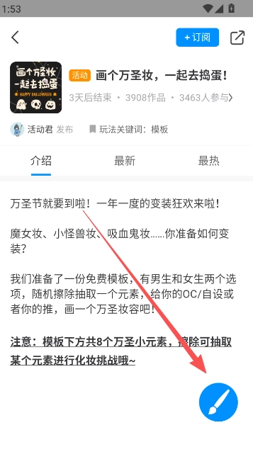 8、查看活动挑战具体要求,点击画笔选项进入。