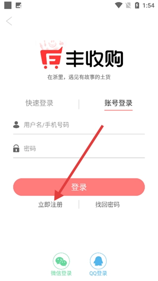 2、在登录页面,除了选择【账号登录】选项外,还可以选择快速登录、微信登录、QQ登录等其他登录方式。