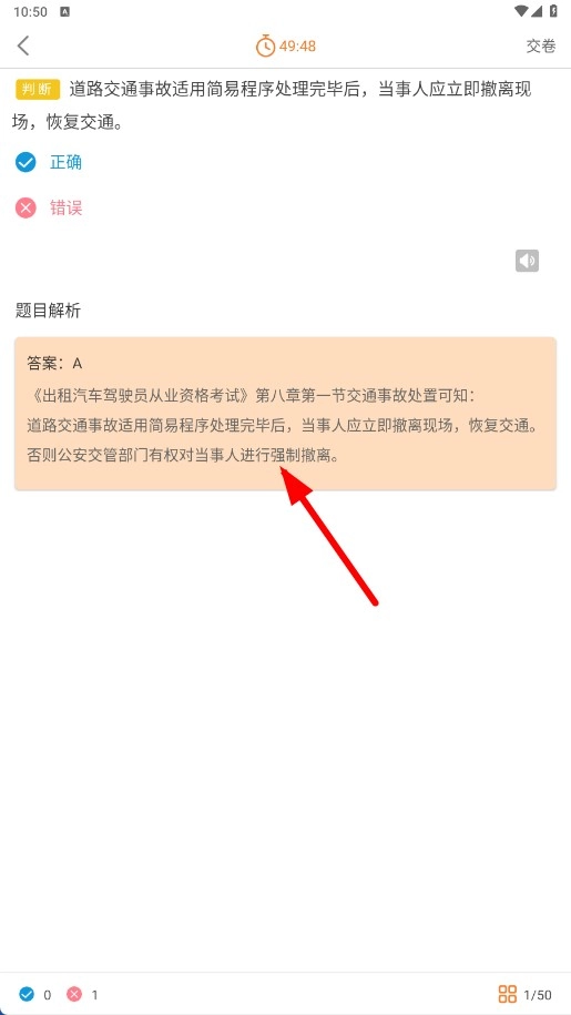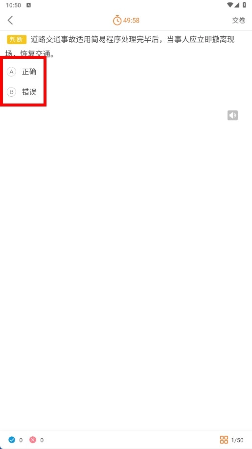 3、在模拟考试中,回答判断题时需选择答案,例如点击【正确-选项】。