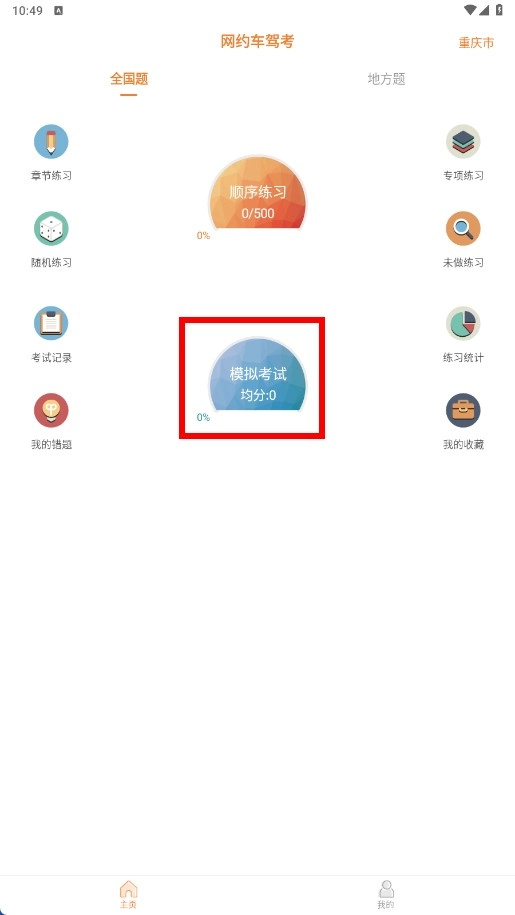 2、进入网约车驾考页面后,找到并点击【模拟考试-功能入口】,即可进入模拟考试环节。