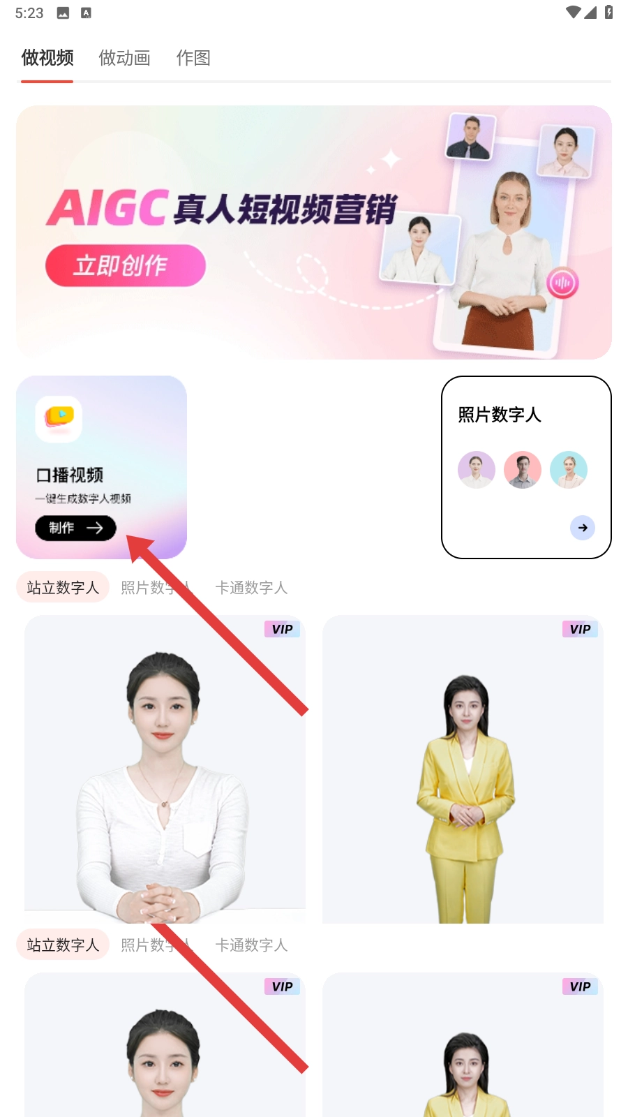 2、进入视频制作页面后,找到【口播视频】的制作入口并点击进入,这样就可以为后续添加配音做好准备了。