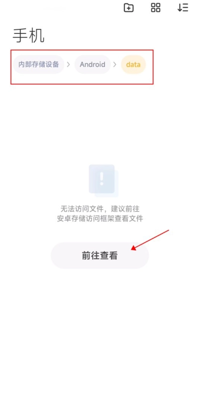 4、回到文件管理界面,找到android-data文件夹,点击进入查看。