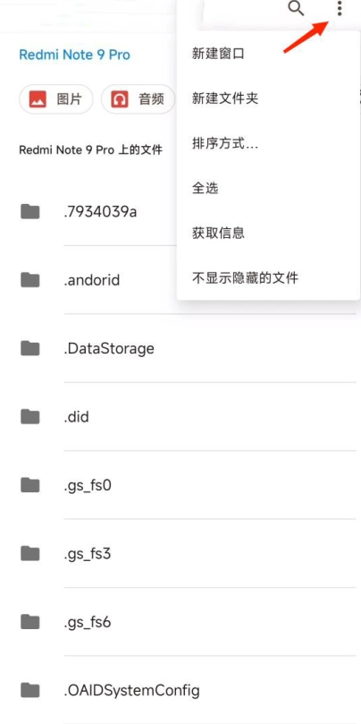 5、点击右上角的三个点服务,勾选显示隐藏文件。